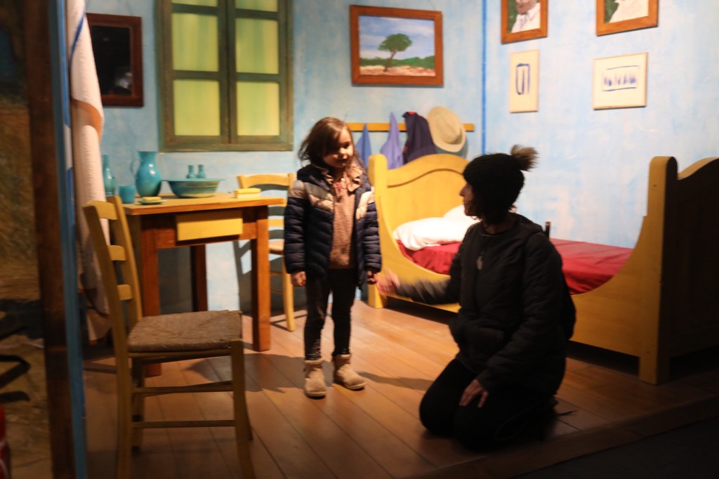 J’ai été quelque peu déçu par l’exposition immersive de Van Gogh, car il y a eu de nombreuses pannes. Cependant, les images étaient magnifiques et nous avons tout de même passé une agréable après-midi, ce qui nous a permis de prendre 2 ou 3 tendres photos.